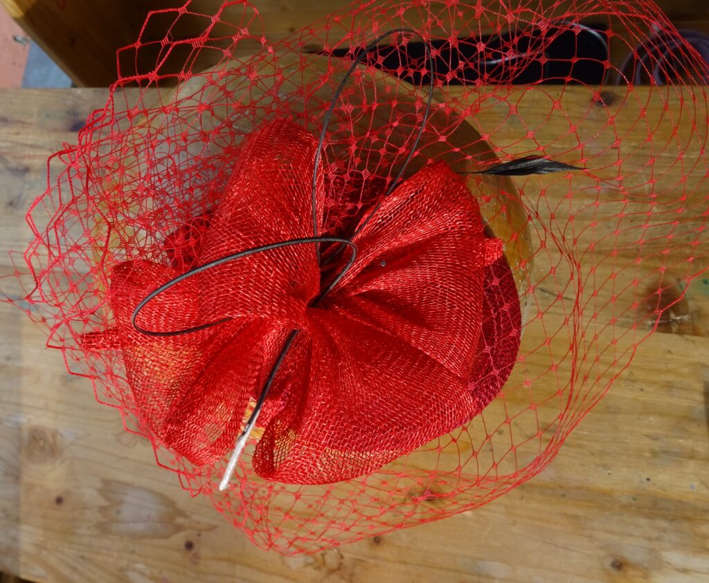 Pro tento fascinátor jsem vytvořila kruhový základ ze sinamy a na něj naaplikovala maxi růži z modistické krinolíny. Vše jsem doplnila bílím francouzským závojem s nopky.. Mrkněte na další fascinátory: https://emma-wolf.cz/kategorie-produktu/fascinatory/