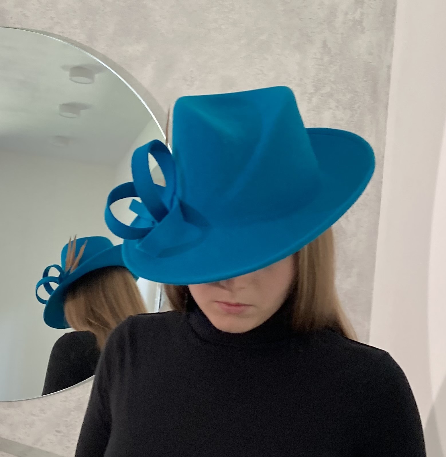 Vytvarovala a ušila jsem jej z jemné králičí plsti firmy Tonak. Na přání Vám mohu vyrobit podobný. Mrkněte také sem: https://emma-wolf.cz/kategorie-produktu/fascinatory/